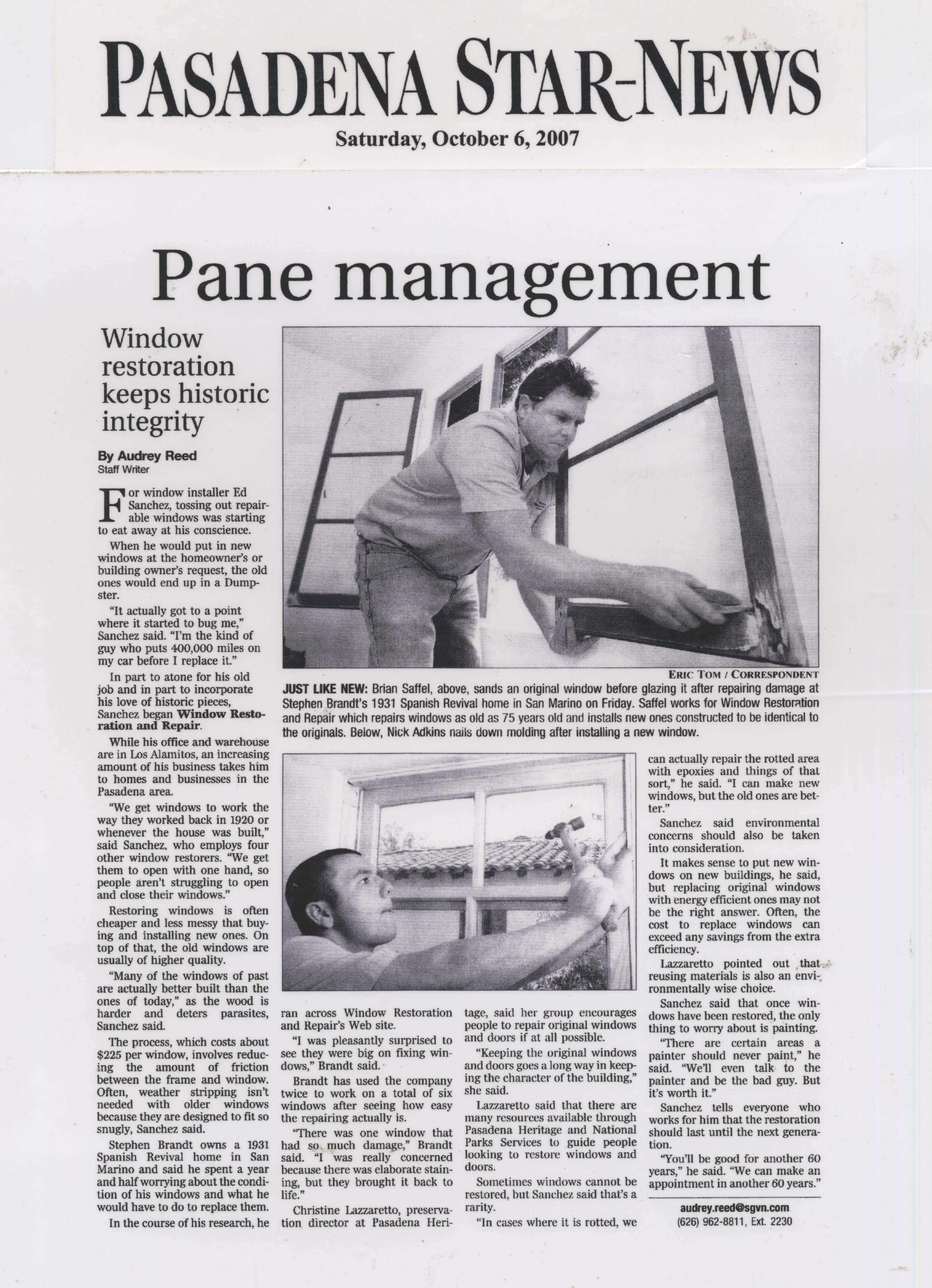 Your team did a great job, when they repaired 70 original, double hung windows in my historical home built in 1930. They were well trained, professional and quick.